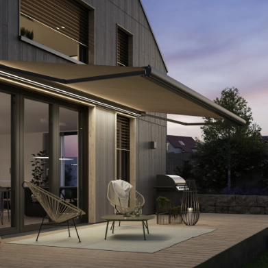 - Stilvolle Kassetten-Markise für weitläufige Terrassen